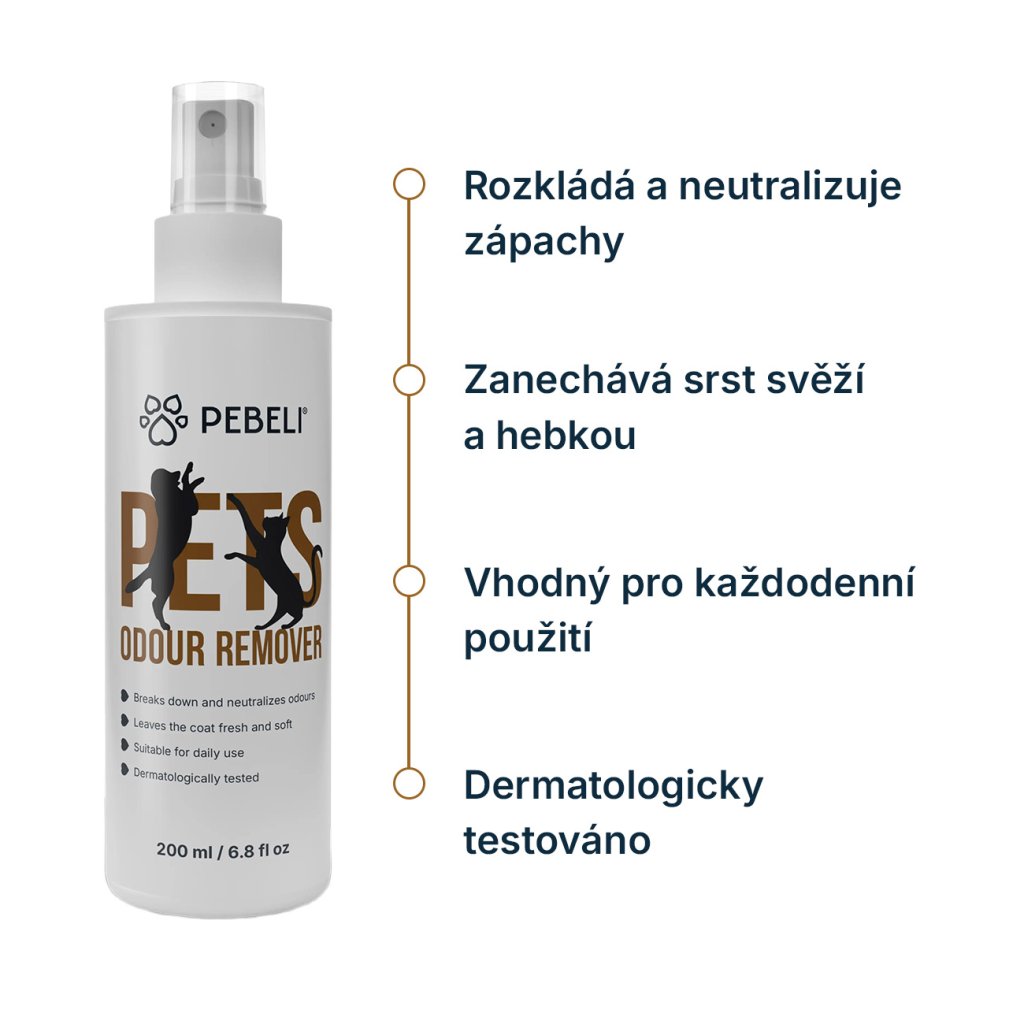 AQUA (voda), ZINC RICINOLEATE (zinek ricinoleát – účinně neutralizuje pachy), TETRASODIUM GLUTAMATE DIACETATE (chelatační látka – zlepšuje stabilitu a účinnost přípravku), PROPANEDIOL (hydratační složka, zjemňuje srst i pokožku), POLYGLYCERYL-6 CAPRYLATE (přírodní emulgátor, pomáhá rovnoměrnému rozptýlení aktivních látek), CAPRYLYL GLYCOL (zvlhčovač a šetrný konzervant), CITRIC ACID (kyselina citronová – úprava pH, antioxidační účinky), SODIUM GLUCONATE (stabilizátor a podpora účinnosti aktivních látek), CAPRYLHYDROXAMIC ACID (antimikrobiální ochrana), PROLINE (aminokyselina – podporuje regeneraci pokožky a zdravý vzhled srsti).